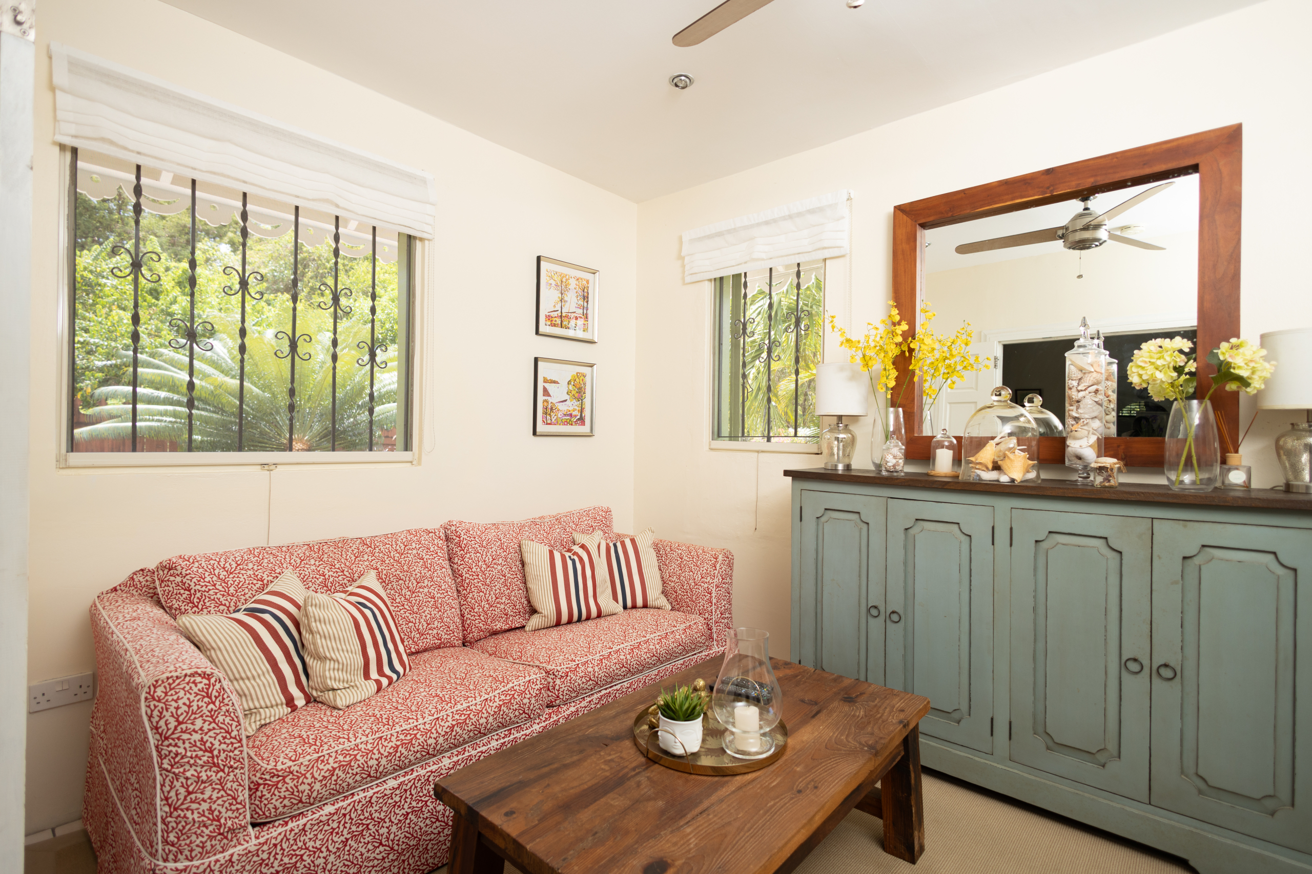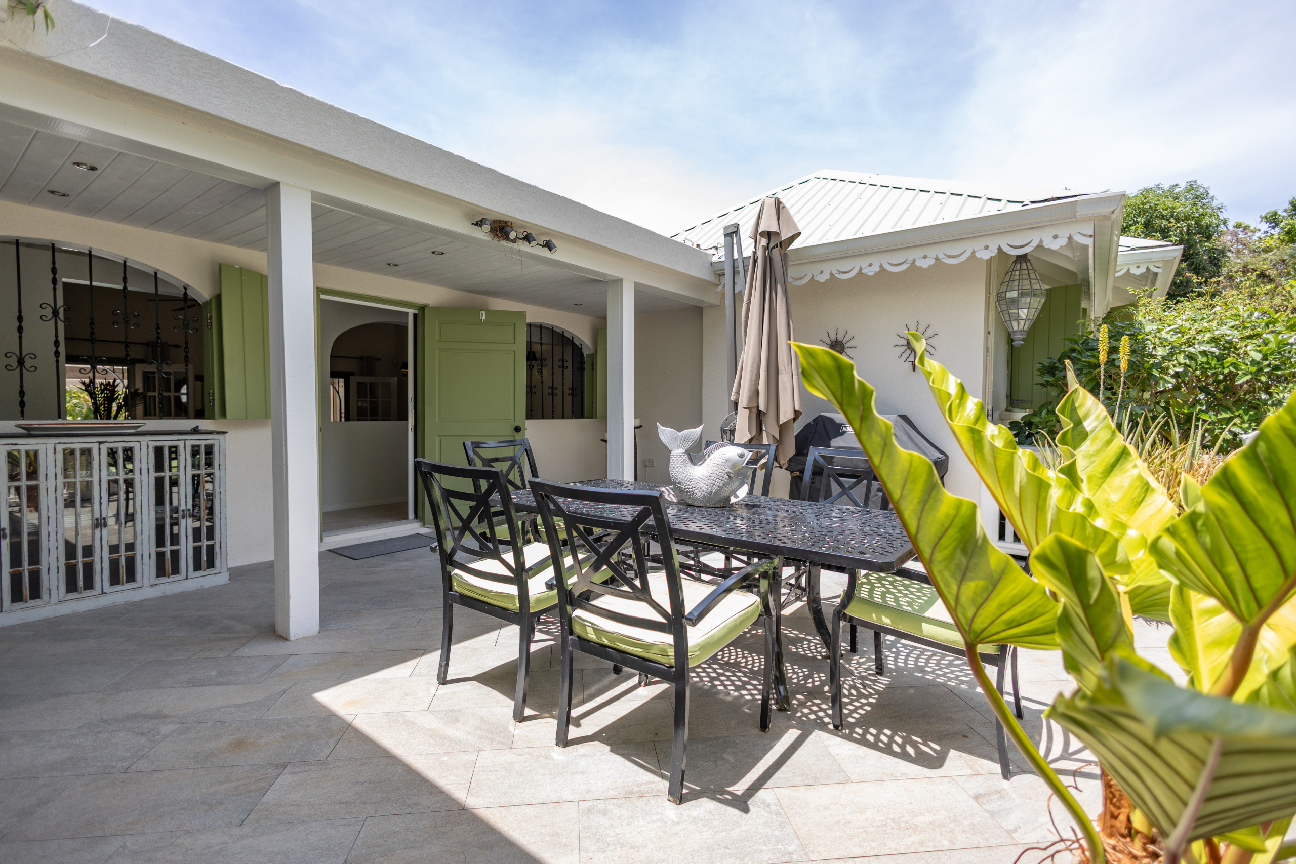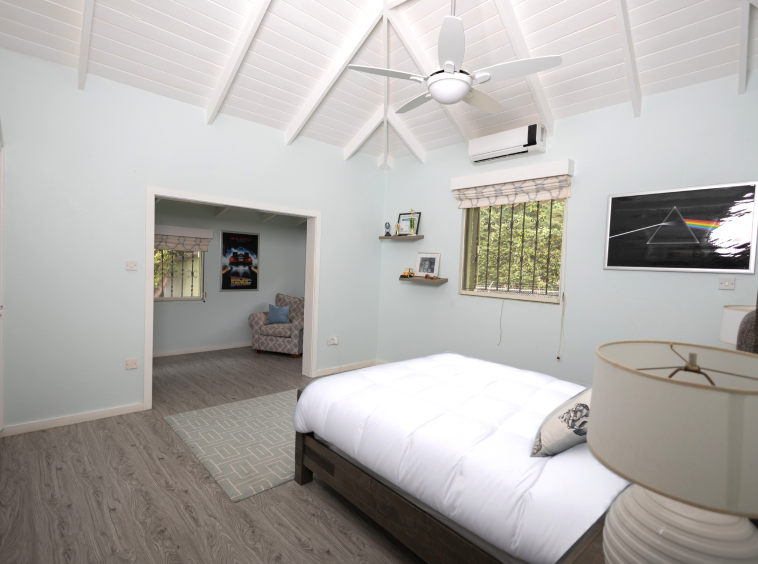 Discreetly positioned with its own private entrance, the fully self-contained one-bedroom apartment features a living room, full kitchen, bathroom, laundry area, and a charming covered porch. Currently leased at $2,700 XCD/month, it offers a steady revenue stream while preserving the main residence’s privacy and exclusivity — ideal for visiting guests, staff, or tenants.